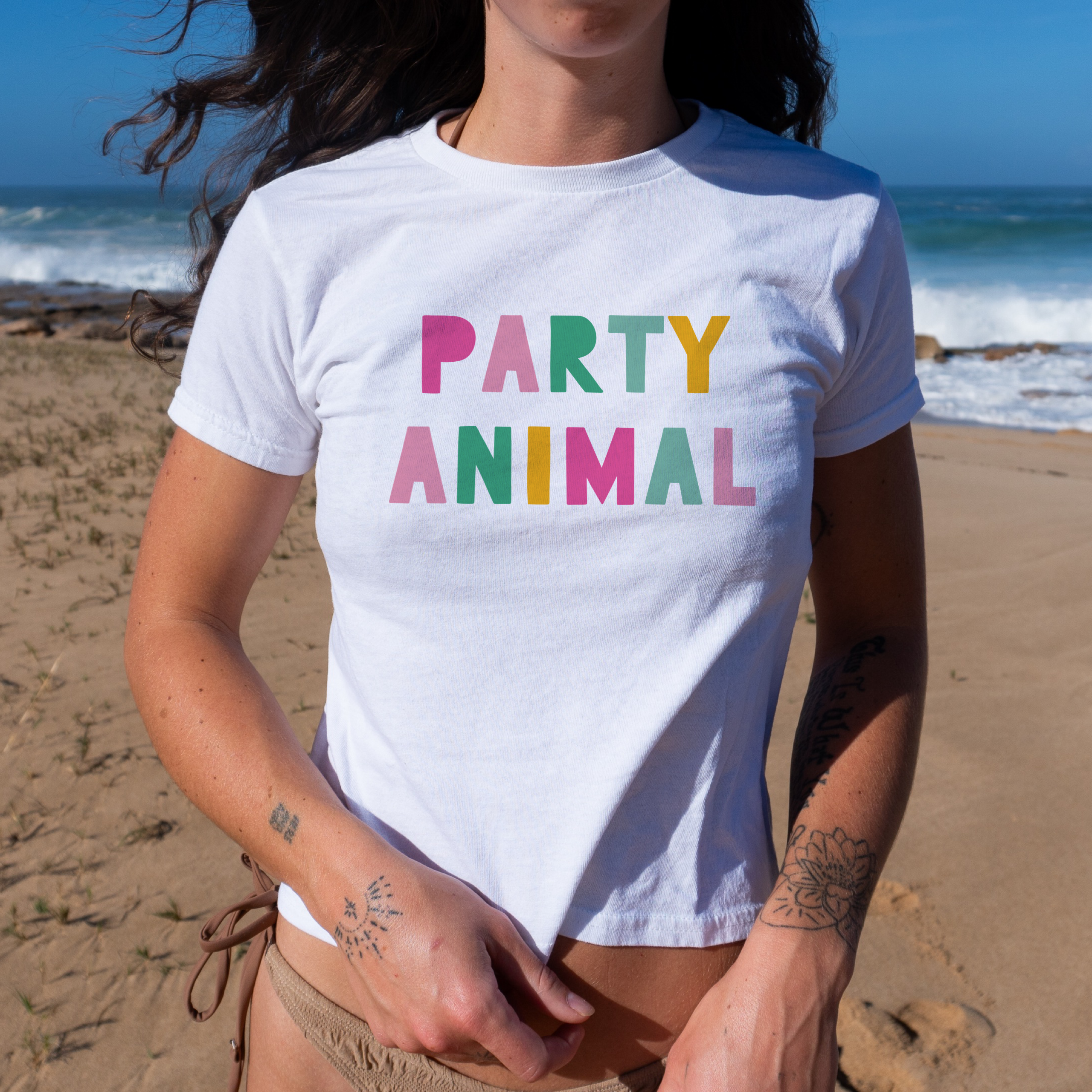 Whether you’re pairing it with low-rise jeans, cargo pants, mini skirts, or layering it under a jacket, this baby tee adds